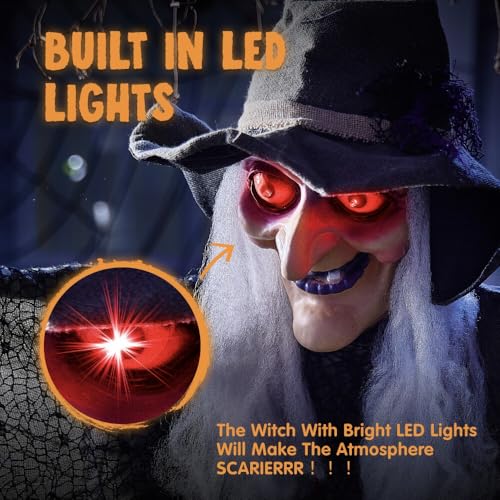 Details: JOYIN 84" Halloween Hanging Witch Decoration with Sound Activation Function,Hanging Animated Talking Witch with Round Eyes for Halloween Haunted House Prop Décor, Outdoor/Indoor, Lawn Decor, Halloween Hanging Decorations