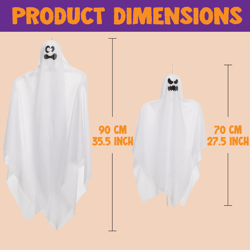 HALLOWEEN DECOR: Four different traditional ghost faces patterns add variety and more fun to your decorations.Great for Halloween Themed Party, Indoor and Outdoor Decorations, or Haunted House Decoration! Hang from a tree, a window, or up the pathway that visitor will walkthrough