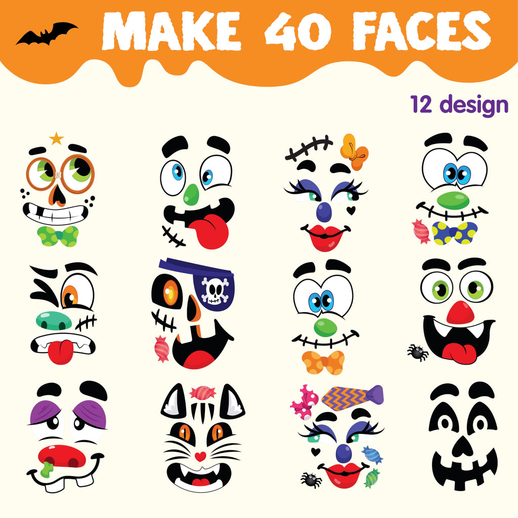 - SUPER VALUE. 40 Pcs Pumpkin Decorating Craft Kit Stickers in 12 Silly and Cute Design Faces and Different Sizes.