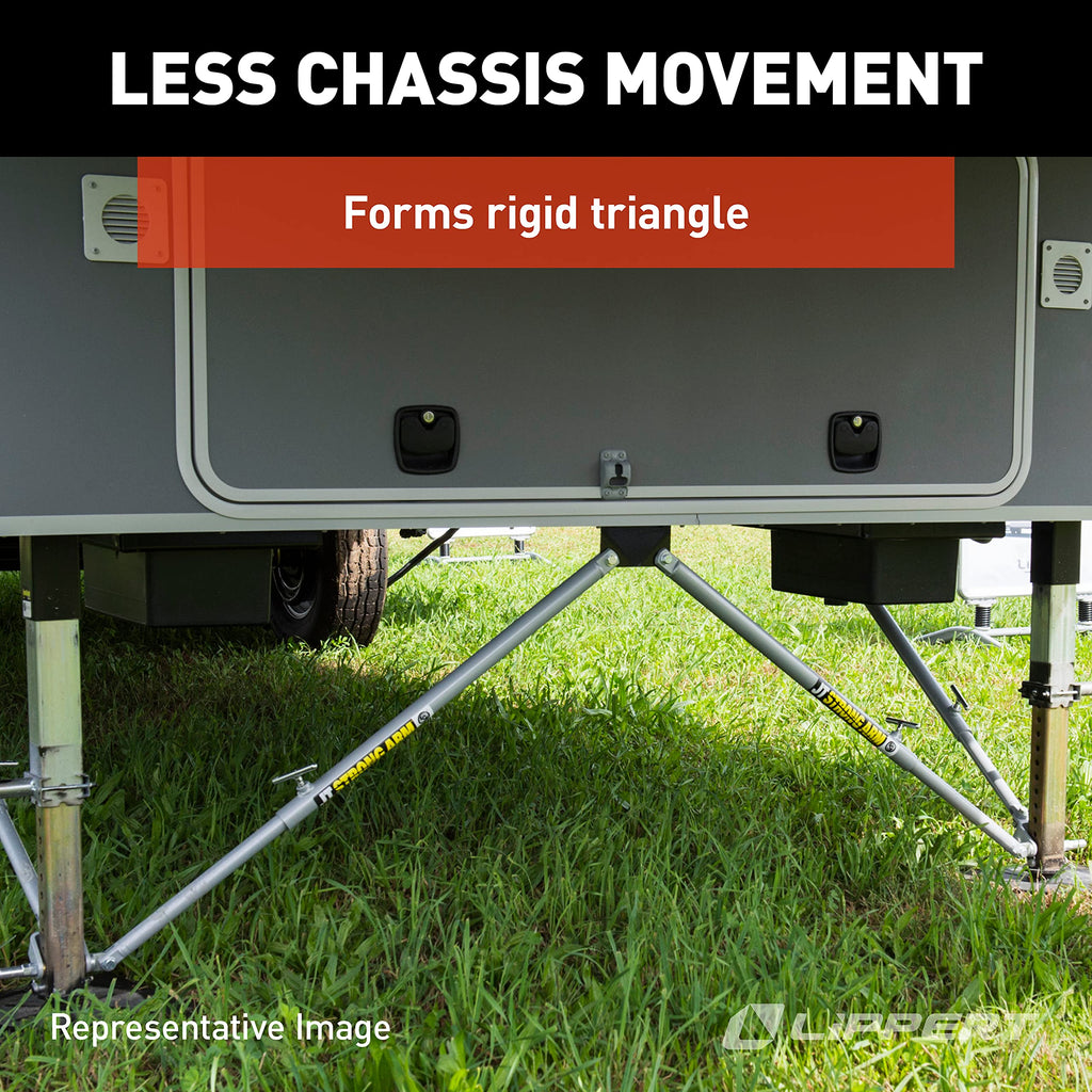 - EASY INSTALLATION — With a user-friendly design, JT’s Strong Arm stabilizer kit requires no welding. The system easily bolts onto your landing gear and RV frame, providing a straightforward, one-time installation process. This simplicity saves time and effort for RV enthusiasts seeking a quick and efficient solution to chassis movement issues