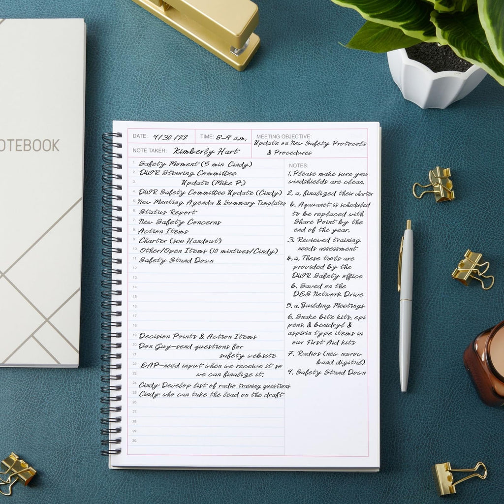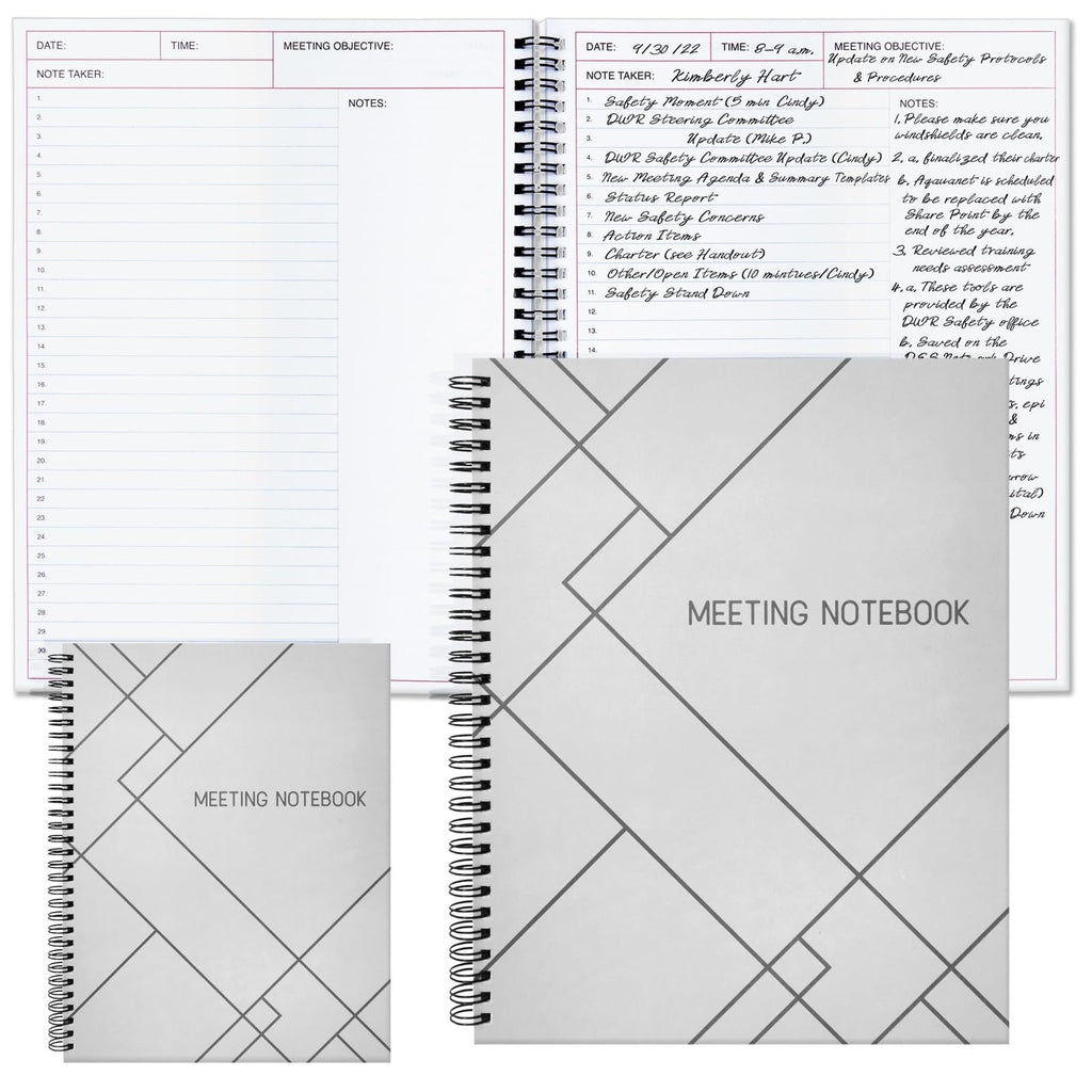 - Comprehensive Organization: Each meeting notebook for work is undated, featuring ruled pages with spaces for the date and time, meeting agendas, objectives, detailed minutes, and 30 meeting points to support thorough organization