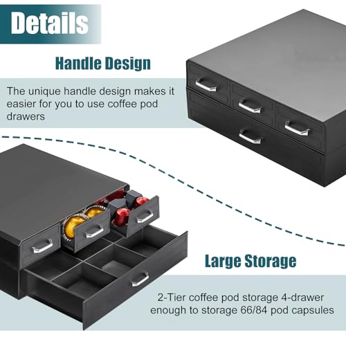 K Cup Holder Drawer 66/88 Pods Capacity, Four Drawers Design for Nespresso Pods Holder, Coffee Pod Holder Compatible With Keurig Pod Organizer&Nespresso/K-Cup/Vertuo Pod Holder, Black