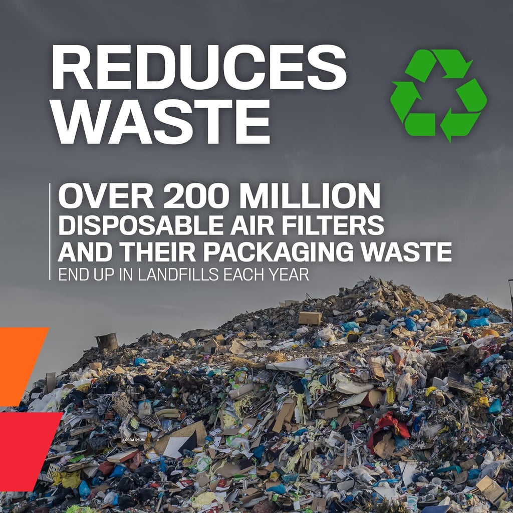 - REDUCES WASTE: Over 200 million disposable air filters and their packaging waste wind up in landfills each year- reusable filters help reduce waste in our landfills
