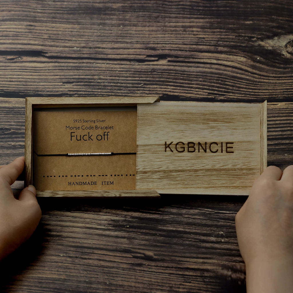 - The Bracelet Inspiration Design: Morse code is composed of dots and dashes which represent different letters or numbers. The international morse code encodes the 26 English letters A through Z. Morse code is a good idea to send hidden messages to him or her.The bracelet for this listing is "F**k off"