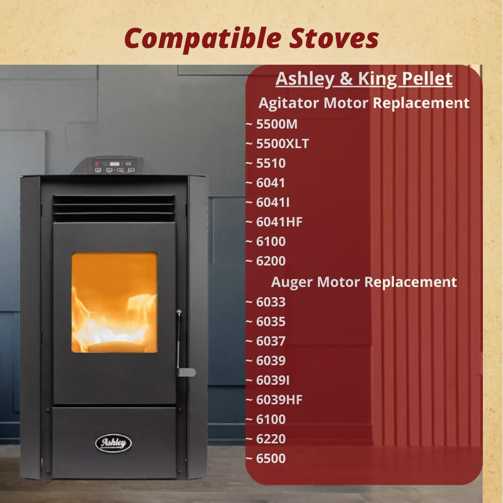 - FITS THE FOLLOWING MODELS: KING AND ASHLEY PELLET STOVE AUGER / AGITATOR MOTOR AUGER Motor Replacement for: ~ 5500M ~ 5500XLT ~ 5510 ~ 6041 ~ 6041I ~ 6041HF ~ 6100 ~ 6200 AGITATOR Motor Replacement for: ~ 6033 ~ 6035 ~ 6037 ~ 6039 ~ 6039I ~ 6039HF ~ 6100 ~ 6220 ~ 6500