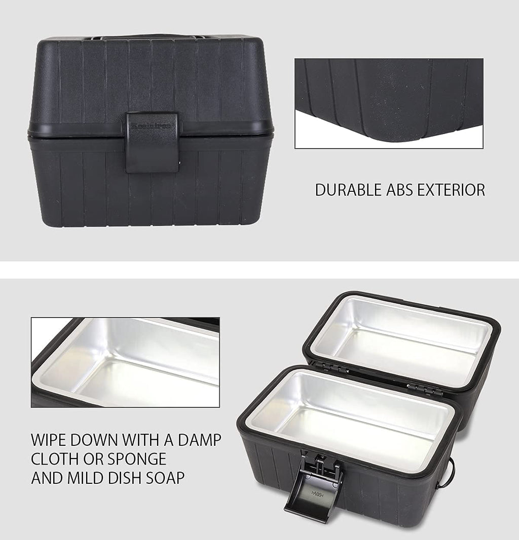 - 12V Power Cord with Built-in Storage: Comes with a 6 ft (1.8m) 12V power cord that wraps neatly around the four built-in hooks on the back of the lunchbox for tangle-free storage