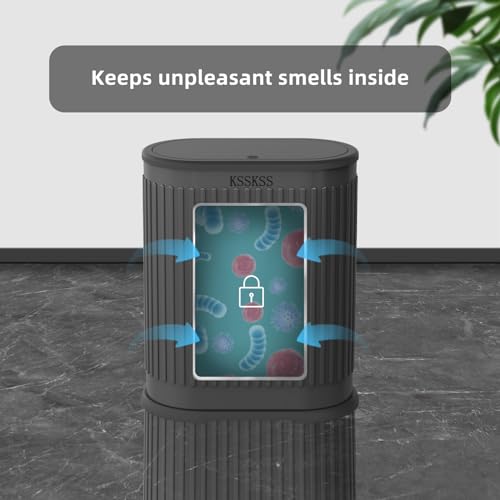 Details: KSSKSS 1.8 Gallons Stainless Steel Bathroom Trash Cans with Press Type Lid, for Bathroom,Powder Room,Bedroom,Kitchen,Craft Room,Office Matt Black