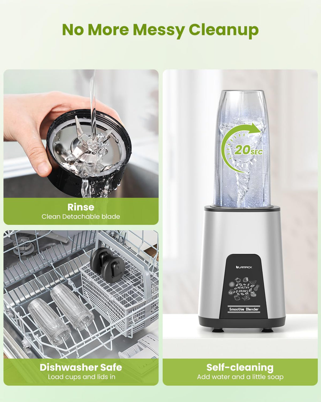 - UPGRADED EXPERIENCE: LAMPICK blender comes with a food grade 304 stainless steel 6-leaf gear blade, allows you to blend and extract nutrients easily. It's detachable design makes cleaning quick and hassle-free, saving you time and effort.