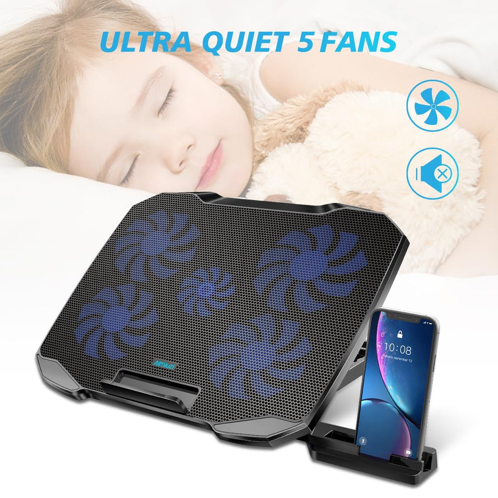 Details: Laptop Cooling pad Laptop Cooler Stand Laptop Fan Cooling pad for 12-15.6 Inch Laptop Notebooks, 5 quiet Fans,4 Angle Adjustable Laptop Cooling Stand