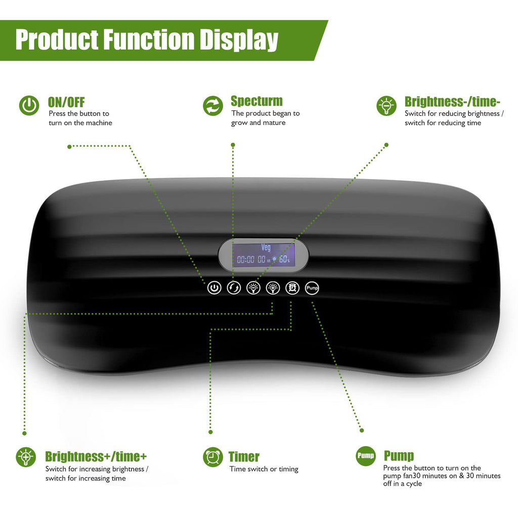 - [Whisper-Quiet Circulation, Vibrant Results]: Herb garden planter indoor built-in an ultra-quiet auto circulation pump to provide consistent water flow, optimizing nutrient and oxygen delivery to roots for vigorous growth meanwhile without disturb to daily life with low noise. Just press pump button, can enjoy pump auto cycling mode: 30-minute active spurts followed by 30 minute energy-saving pauses, fostering efficiency at its finest.