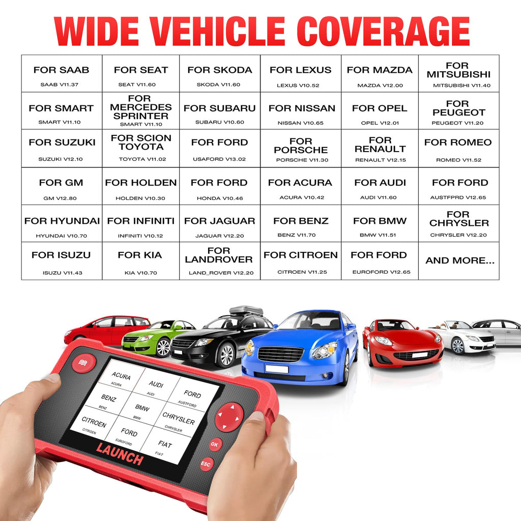 - 【Broad Vehicle Coverage + 10 Languages】The LAUNCH CRP123 V2.0 reads data from the ENGINE, TRANSMISSION, ABS, and SRS systems of Asian, US, and European manufacturers. It is compatible with a wide range of brands, including Coverage includes for Suzuki, for Honda, for Mitsubishi, for Nissan, for Toyota,for Mazda, for Hyundai,for Kia, for Subaru,for Infiniti, for Lexus, for Acura, for Isuzu, for Ford, for G.M, for Chrysler, for Benz, for B.MW, for V.W, for Opel, for Volvo, for Fiat,for Land Rover, for Seat, for Skoda, for A.udi,for Porsche, for Saab, for Jaguar among others. It supports 10 different languages.