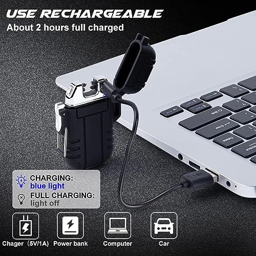 - USB RECHARGEABLE LIGHTER: the flameless dual arc lighter is powered by a rechargeable lithium battery, usb rechargeable electronic lighter, about 2 hours full charged. No gas or butane required, no more refilling, convenient and easy to use