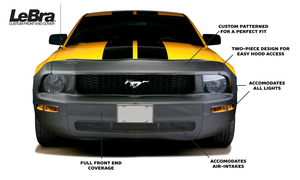 Details: LeBra Custom Front End Covers provide an easy way to help protect vehicles from the unexpected. The 2-piece all-weather car bra offers stylish protection that makes vehicles look good and the leather grain vinyl adds style and a custom look. An inner lining made of unique knit material resists moisture while protecting the shine and finish of your car. Custom-patterned to fit your exact vehicle and is easy to install.
