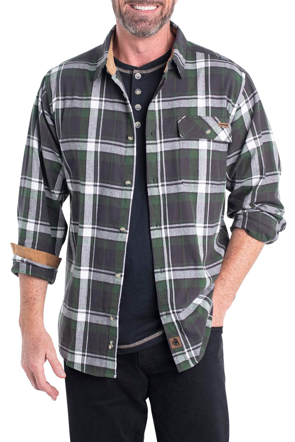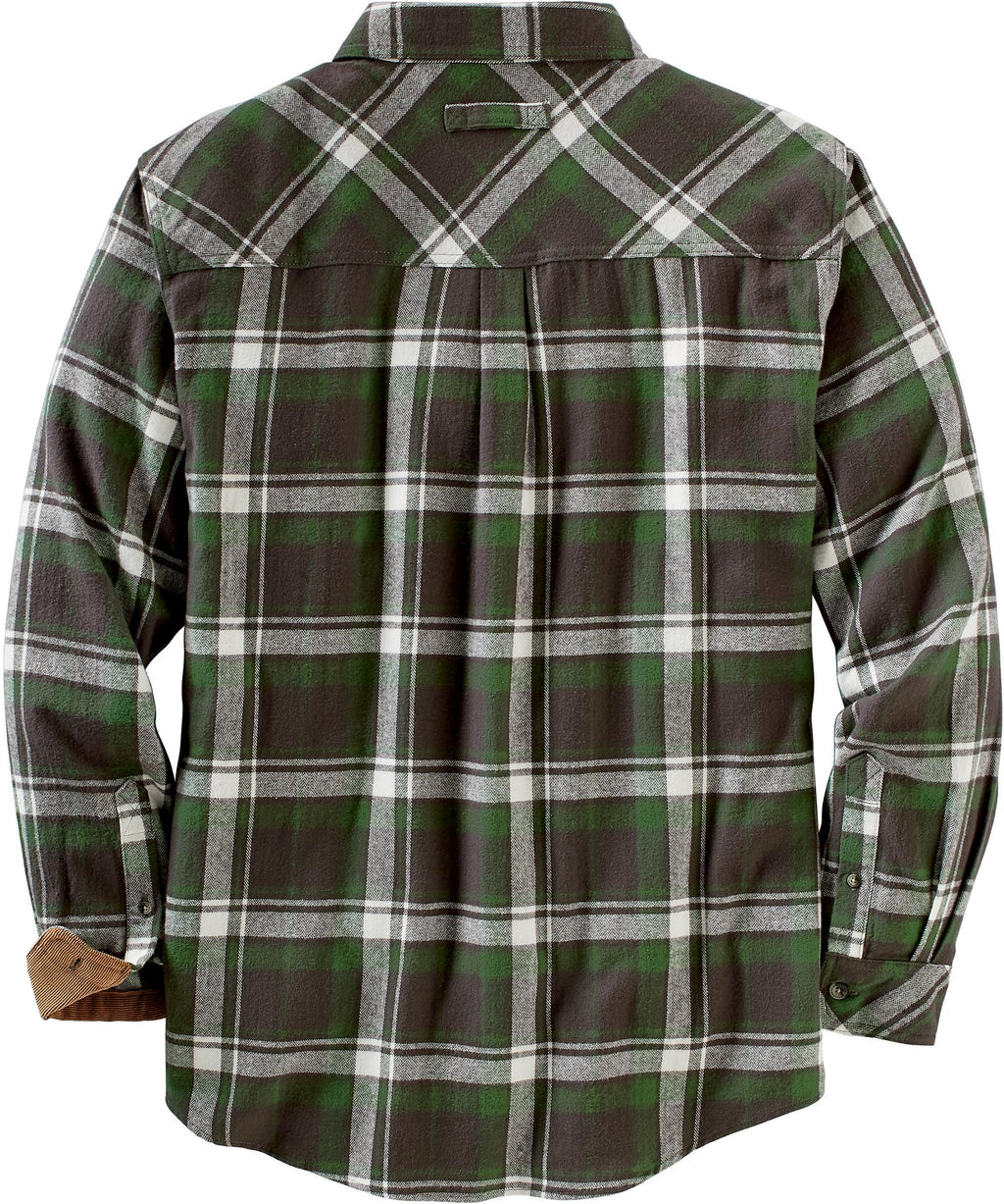 Our original single pocket flannel - The Buck Camp Flannel Shirt is the perfect weight to wear alone or layered over a t-shirt or under a shirt jacket. The traditional style and signature corduroy details offer unmatched durability, while the relaxed fit and brushed cotton flannel provide ultimate comfort. With multiple exclusive plaids and solids, they're suitable for any occasion from the woods to the office. The Buck Camp Flannel Shirt gives you an incredible "bang for your buck"! Big & Tall sizes are designed for men over 6'2" and add 2" in body length and 1-1⁄2" in sleeve length.