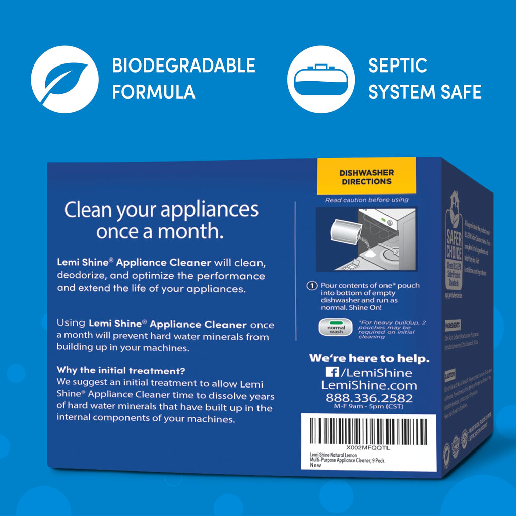 - BUSTS BUILD-UP & RESTORES PERFORMANCE: A cleaner kitchen sink, a smoother running washing machine, an even fresher dishwasher... it's all possible with Lemi Shine. The citric acid powder in our appliance cleaner works to bust up buildup and gunk you can't see to have your machine working like new!