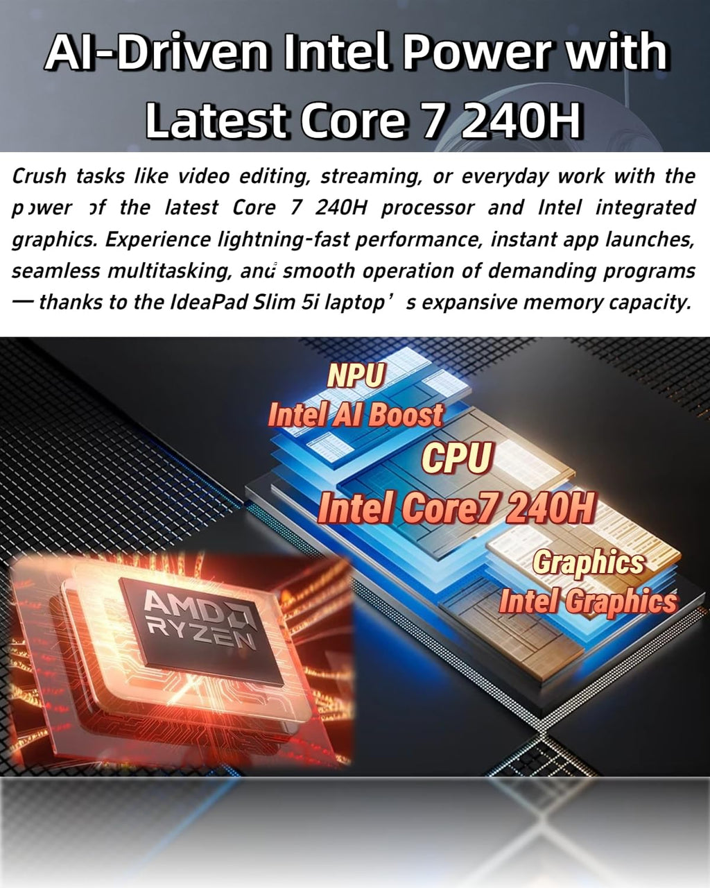 - 💡【Smarter Intel AI Power for Real-World Multitasking】 Equipped with the Intel Core 7 240H (10 cores, 16 threads, base 2.5 GHz, up to 5.2 GHz) and an on-chip AI Boost NPU rated at 18 TOPS, this lenovo laptop turns routine work into rapid workflows on your ideapad. Use Copilot to summarize meetings, generate outlines, or translate content while spreadsheets, research tabs, and inboxes stay responsive in the background. AI-driven acceleration helps photo clean-up and voice commands feel instant, so you move faster from idea to deliverable without juggling multiple devices or waiting on progress bars—perfect for hybrid teams, students, and small business owners who need reliable speed every day
