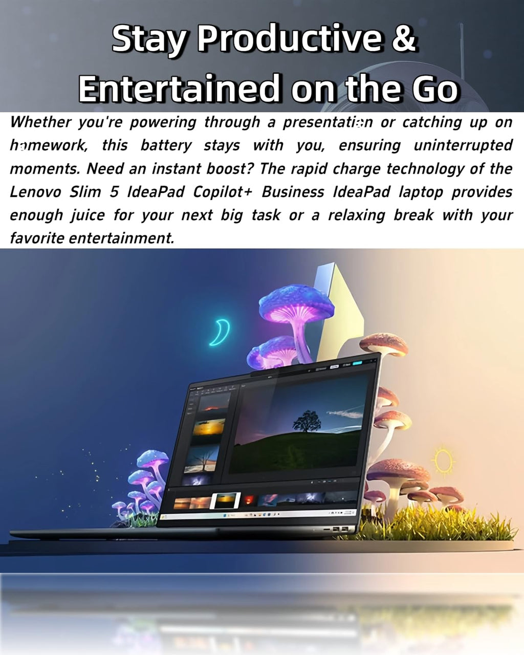 💼 Lenovo IdeaPad Copilot+ Business Laptop brings Intel smart performance to your everyday. Powered by the Intel Core 7 240H (10 cores / 16 threads, up to 5.2 GHz) and an on-chip AI Boost NPU delivering 18 TOPS, this lenovo laptop accelerates Copilot tasks like meeting summaries, content drafts, translations, and photo touch-ups while keeping multitasking on your ideapad responsive and cool