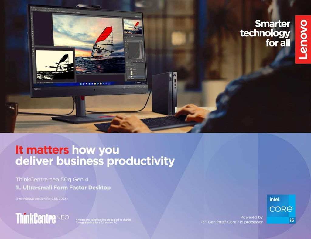 - Lenovo ThinkCentre neo 50q Gen 4 Tiny Desktop Computer helps you to maximize your desktop space while allowing you to run a variety of applications with 13th Gen Intel Core i5-13420H processor, 8C (4P + 4E) / 12T, P-core 2.1 / 4.6GHz, E-core 1.5 / 3.4GHz, 12MB. Measuring about 7 x 7 inches with a 1.4 inch depth, this incredibly compact computer system fits almost any location.