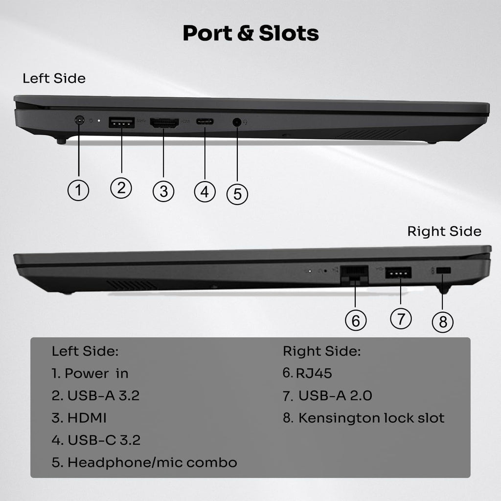 - [Tech Specs] 1 x USB 3.2 Type-C, 1 x USB 3.2 Type-A, 1 x USB 2.0 Type-A, 1 x HDMI, 1 x RJ45, 1 x headphone/microphone combo, Webcam, Numeric Keypad, Wi-Fi and Bluetooth