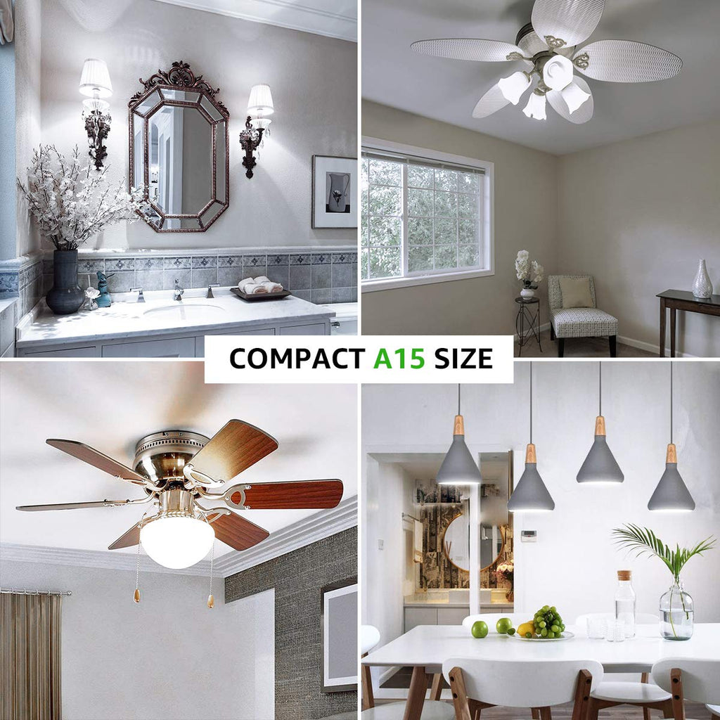 - Versatile Applications: Our appliance light bulb features a compact A15 shape and standard E26 base, making it suitable not only for refrigerator lighting but also for various home appliances, ceiling fans, pendant lights, and accent lights in kitchens and bathrooms.