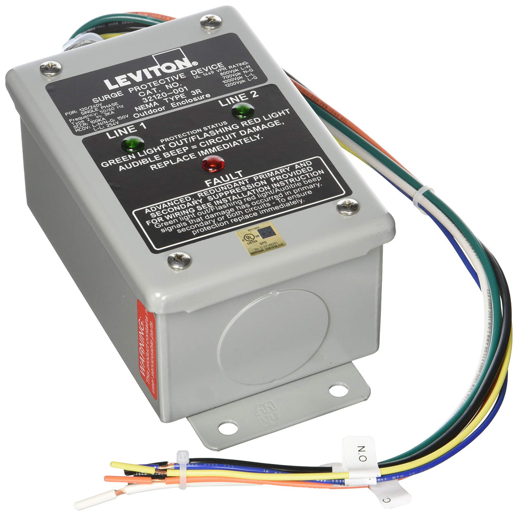 Leviton's Surge Protection Devices can be used individually or as part of a coordinated application strategy, to protect sensitive electronic equipment, in industrial, commercial and residential locations, from the stress and degradation inflicted by voltage transients. Leviton Surge Protection Devices are listed to UL 1449 Standards. Leviton's outstanding Surge Protection Devices divert damaging voltage transients, or surges, away from electronic equipment. Transients are diverted away from sensitive micro circuitry, providing protection against catastrophic failure, costly downtime and data disruptions. 120/240 Volt Single Phase, Surge Panel, DHC and X10 Compatible, 80Ka L-N Max Surge Current.