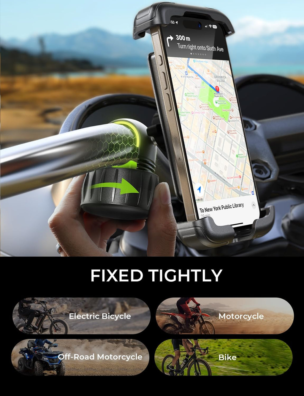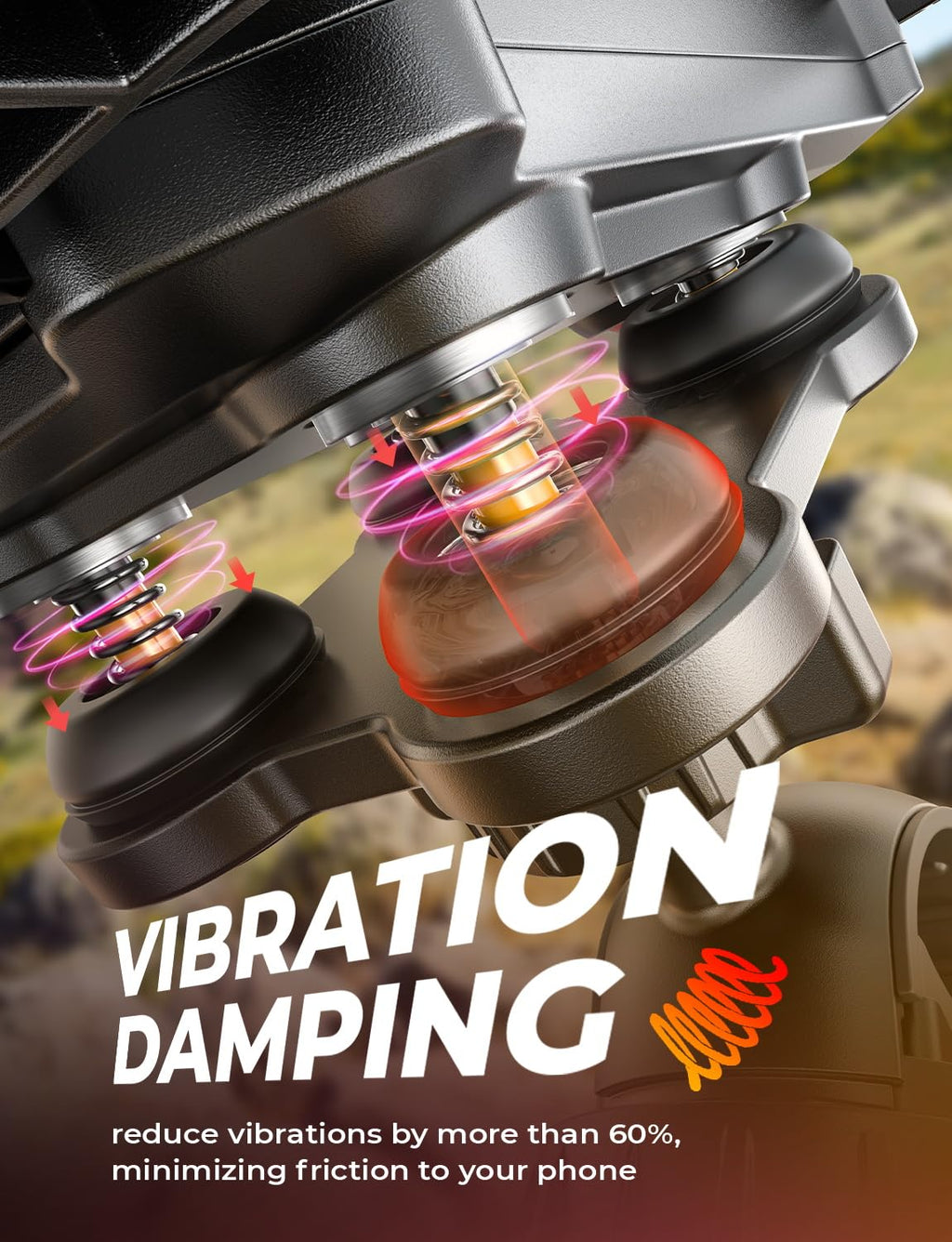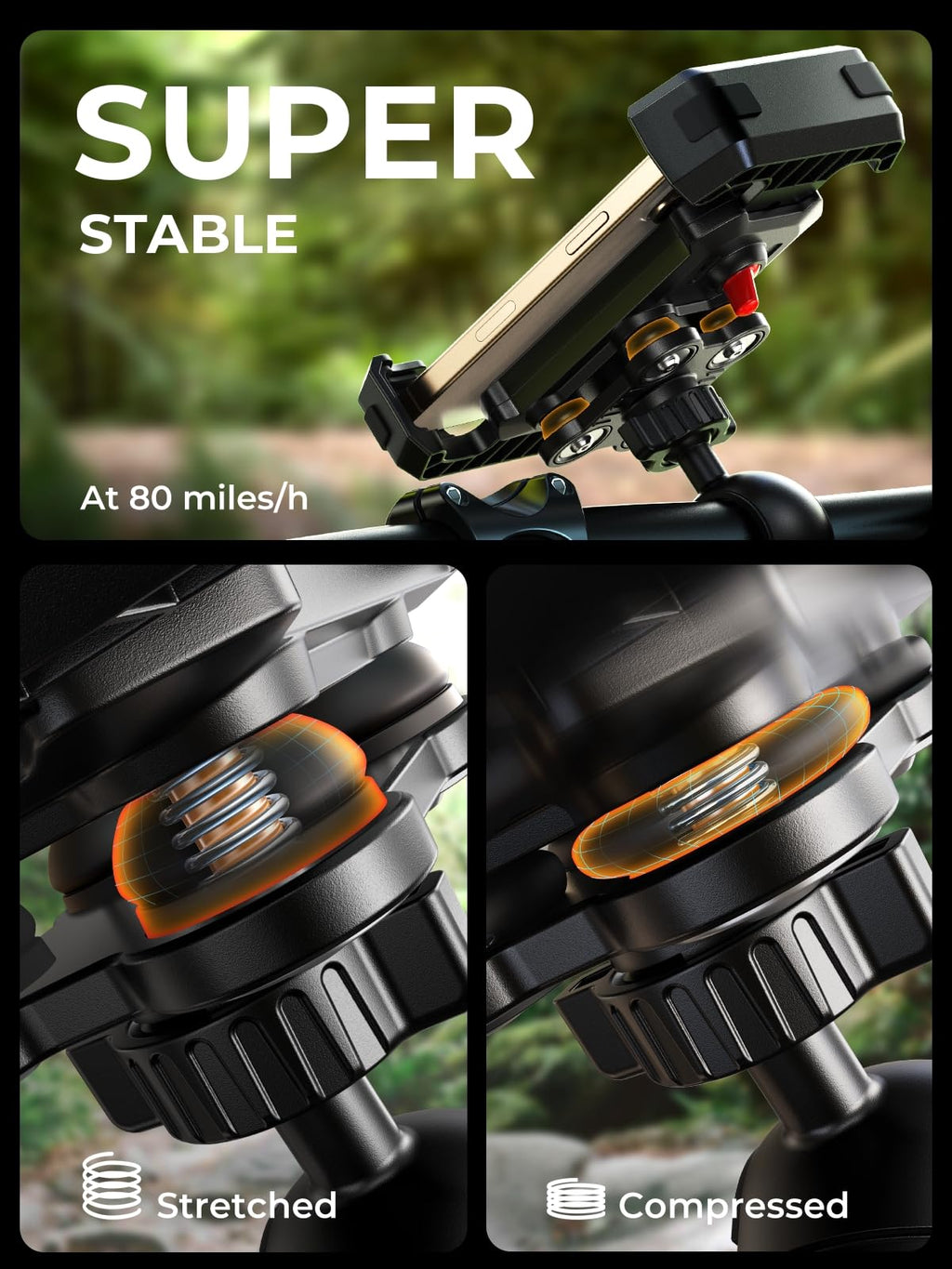 - 【2025 Newest Shock Absorption System】 Meet LISEN 2025 bike phone holder featuring a new pneumatic shock system. This air absorption anti shock smooths the ride, keeping your phone steady on bumpy roads. Our telescopic shock-absorbing structure can cushion over 70% of severe vibrations, just like your phone wearing a buffer suit.