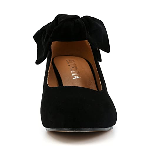- Upscale Your Look: Mid kitten heel - comfortable to wear low heels for women,Slip on, Bow tie,round toe, rubbler sole womens dress shoes Take A Look At These Sleek Pumps Featuring The Statement Kitten Heel That Everyone Is Going Crazy For.