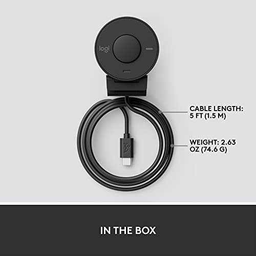 Details: Say hello to better video meetings. Place Brio 301 at your best angle for an eye-to-eye connection. Look natural thanks to 1080p resolution and auto light correction for low-light situations. A noise-reducing mic suppresses background noise so others can hear you clearly. Spin the easy-to-use privacy shutter to cover the lens between calls. Brio 301 is certified for Microsoft Teams, Google Meet, and Zoom, so you can enjoy hassle-free meetings. Add a dash of personality to your workspace with a modern shape and a subtly speckled design made from at least 48% recycled plastic. (3) (1) Download free Logi Tune for a customized experience. Logi Tune app currently supports headset voice prompts in the following languages: English, French, German, Italian, Spanish, and Portuguese. (2) Logi Tune not available for Chrome OS (3) Webcam plastic content may vary by color. Excludes Electronic (EE) Components, cables, and packaging. 62% for Graphite and Black, 48% for Off-white and Rose. (4) Bluetooth-enabled devices that support external keyboards