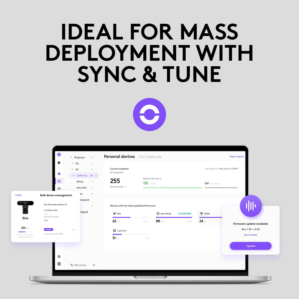 - Simple Device Management: Easily manage your Logitech video calling devices with Logitech Sync; deploy updates and modify settings all from a single cloud-based platform
