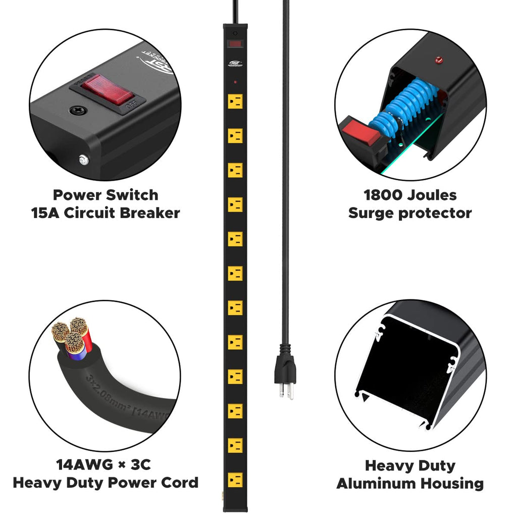 - [Premium Safety Features]: 1800 Joule surge protection & built-in 15A circuit breaker provide superior protection for everyday use in professional work areas and home offices, protecting computers, peripherals and other electronic devices from damaging surges, voltage fluctuations and noise spikes.Integrated one-piece copper bar inside makes it safer and more reliable to use.