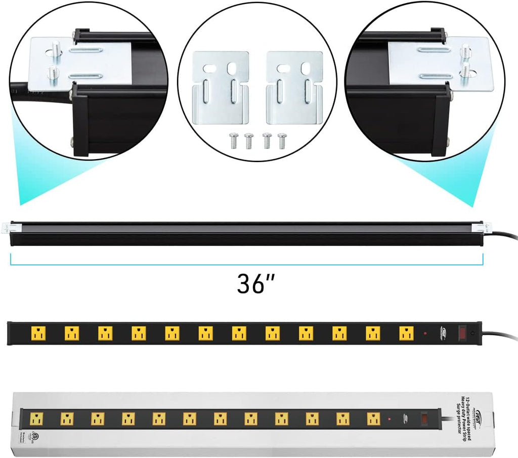 - [Detachable Mounting Brackets]: Comes with two types of 4 mounting brackets and 8 screws, ready for horizontal, vertical and under-desk installation, removable design makes it very convenient for you whether you are mounting it for use or using it on the desktop, ideal for power distribution in office, home, school, commercial, shop, industrial, garage workbench, networking and telecom applications.