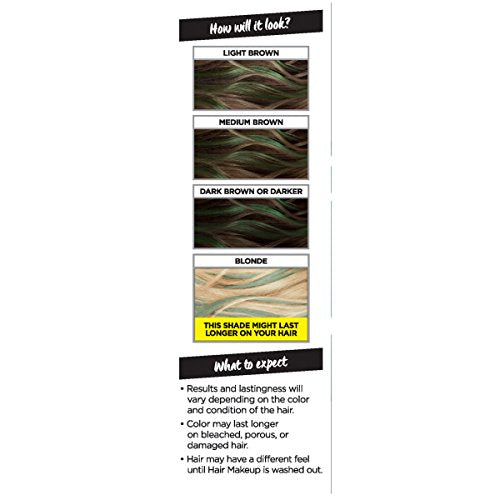Details: No es un tinte para el cabello, ¡es maquillaje para el cabello! Fórmula suave para un color de un día que se lava con champú. No requiere lejía ni guantes. Mezcla y combina diferentes tonos para crear tu propio color de cabello no permanente. Sin guantes. Sin daños. Sin reglas. Pelo rosa, pelo azul o pelo púrpura, este color de cabello lavado te da opciones ilimitadas.