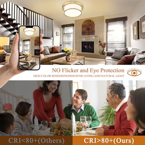 - 【Energy saving & Eye caring】The 22W flush mount LED ceiling light fixture is as bright as a traditional 140W incandescent lamp, saving you up to 90% in energy costs. The CRI 80+ renders close to the object’s true color, provides the best illuminating performance, and provides excellent lighting while saving a lot of electricity.