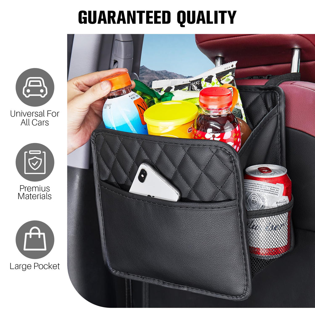 - 【Multifunctional Car Seat Storage】 This car back seat organizer can not only be used as a car seat organizer, but also can be used as mini trash can for car. Double sided and front mesh bag design, convenient and practical for storage small items. The front and side mesh pockets of the small car trash can can hold small items such as wet wipes and towels. Also this car front seat organizer is suitable for home, office.