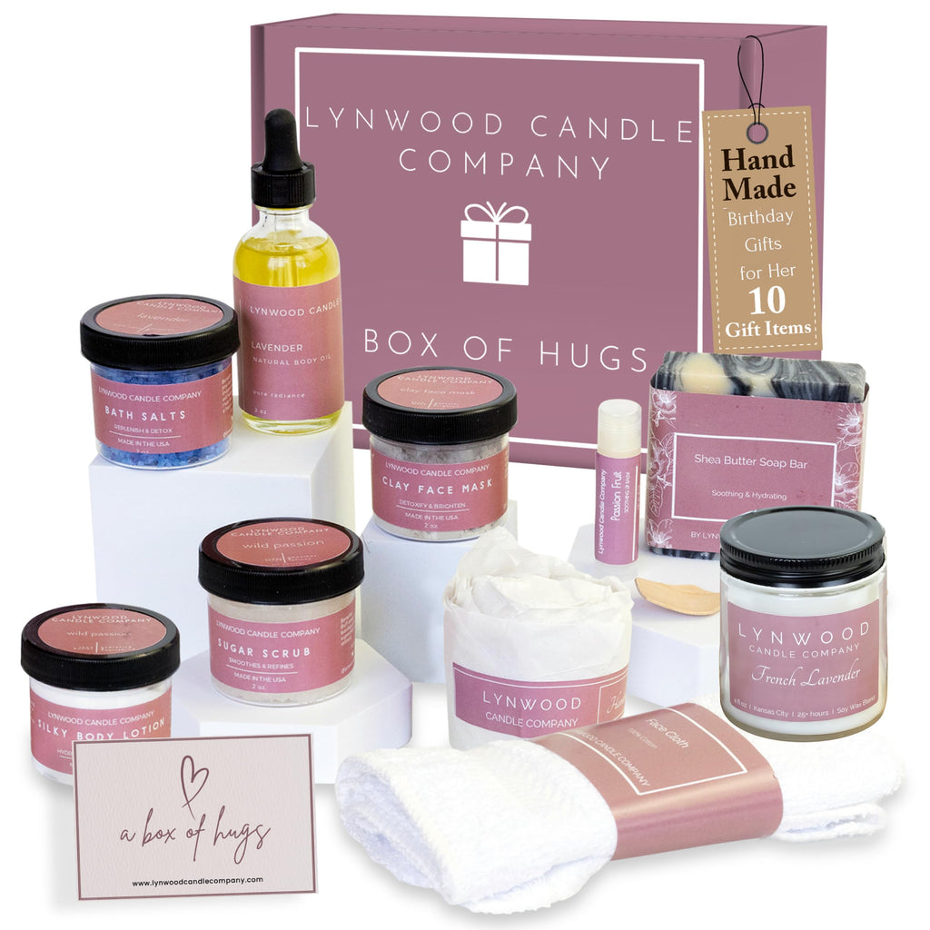 - Birthday Gifts Basket for Women: Delight her with a luxury bath gift set for women, packed with spa items including a soap bar, facial mask, lotion, lavender bath salts, candle, bath bomb and lip balm. This women's birthday gift set includes premium handmade products