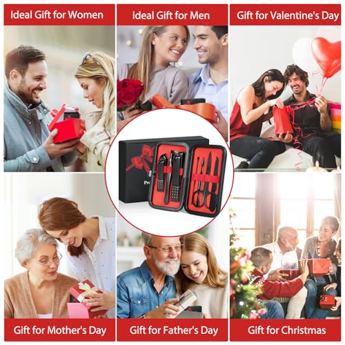 - Giftable for Men : Mens personal care manicure kit ,exquisite appearance and portable size,nice present for men husbands father. Steady black PU leather case and and eye-catching red lining, stylish and functional good for men. Gfftable box package for Christmas stocking stuffers for men ,husband, boyfriend, brother ,families , friends, wowen and girls