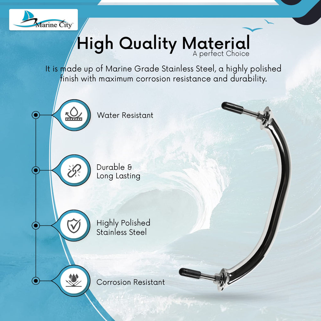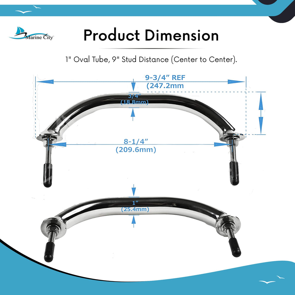 - Package includes: 1 pcs of Marine City Stainless Steel Oval Marine Grab handle/Handrail with Flange and Studs.