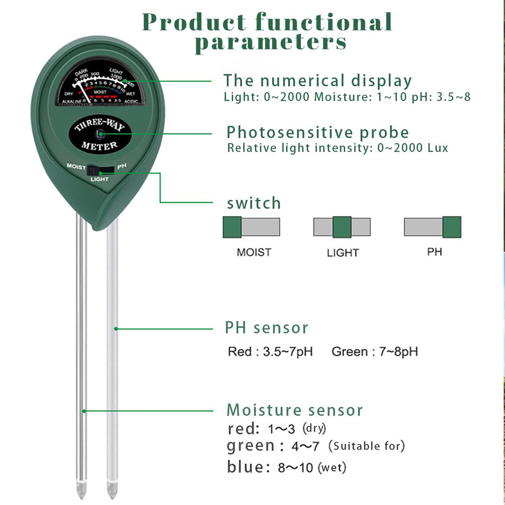 - INDOOR & OUTDOOR USE: Garden soil ph meter 3-in-1 soil tester is a super helpful tool for your gardening,it is extremely important for some delicate plants which are very sensitive to water,lights or PH.It's definitely a good tool soil moisture meter for your gardening