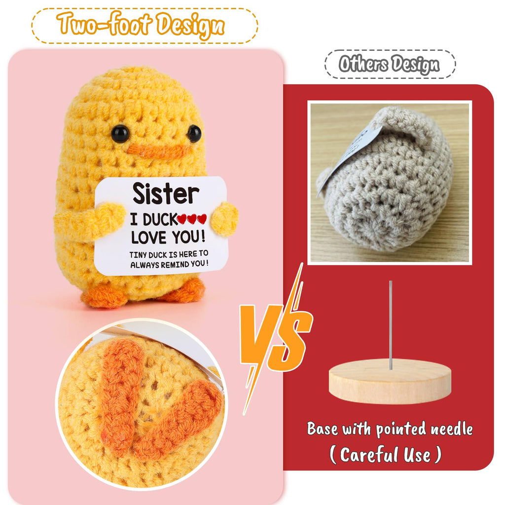 - High-Quality Knitted Duck for Sister: This crochet duck is made with high-quality yarn, meticulously hand-stitched to create an appealing look. Each duck is handcrafted with crochet, making it unique and one of a kind, just like your sister. Measuring approximately 3.14 x 2.36 inches, this crochet duck is compact and can easily be carried in backpacks.