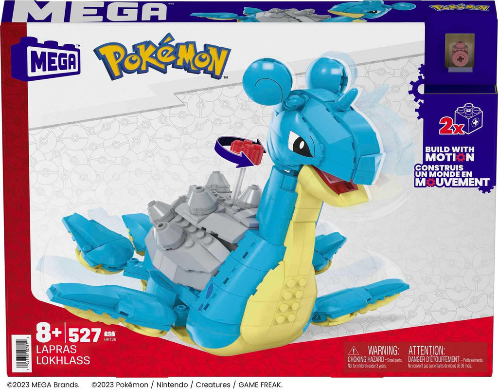 Details: Lapras, the impressive Transport Pokémon, is now available as a building set with motion. The built model sits 7 inches tall to showcase Lapras's formidable scale. Turn the crank on its shell to move its head left and right and watch Lapras swim. Lapras is a great addition to your Pokémon collection and pairs well with other MEGA building sets; each sold separately.