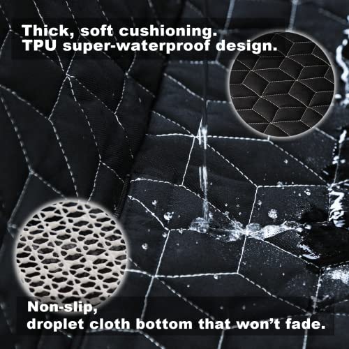 - PROTECT TRUCK INTERIOR: Our pet seat cover is made of 600D Oxford fabric, 100g PP cotton, 210D polyester fabric, and 100% waterproof TPU. The durable material prevents your dog from scratching the car seats. Installing the back seat pet cover for dogs can prevent pet hair from getting into the seat crevices while also protecting the car interior from pet urine damage