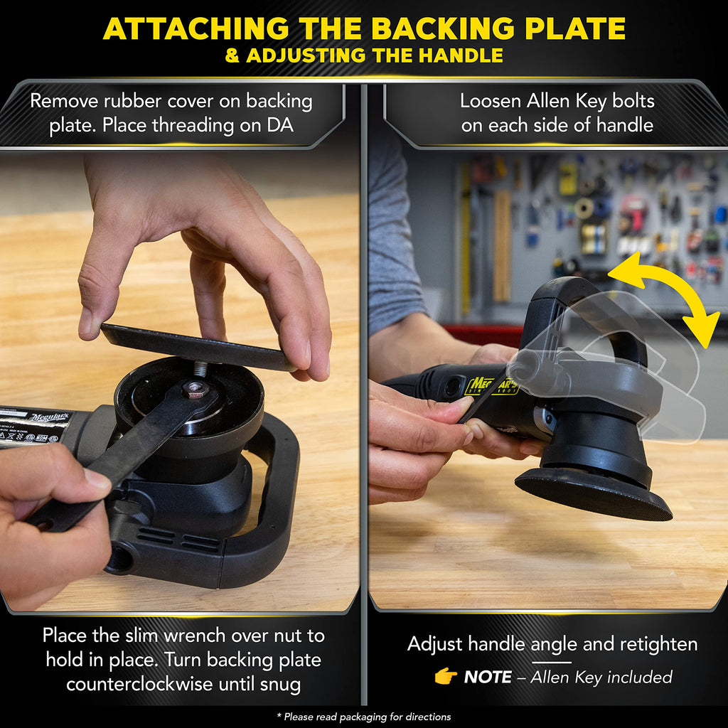 Details: Meguiar's MT300 Variable Speed Dual Action Polisher is engineered to deliver the best results when compounding, polishing or waxing your car, RV, boat and more! Designed by professionals, this auto polisher features a billet counterweight with a multi-bearing design to ensure smooth, precision balance with increased durability. Digital Torque Management electronically adjusts the torque needed to maintain the loaded speed level, while the thumb-adjustable speed dial offers a wide speed range to allow for faster compounding and superior final polishing. Ergonomically designed to reduce user fatigue, this car polisher machine features a multi-position D handle for improved comfort and control at all skill levels. Use Meguiar's orbital polisher with DBP3, DBP5 and DBP6 backing plates for 3-, 5- and 6-inch discs to tackle every car detailing job with ease. When you need to apply car polish, car scratch remover or compound, Meguiar’s car buffer has your back. Reflect your passion for your vehicle with Meguiar’s. Since 1901, Meguiar’s drives the art and science of car care to empower car enthusiasts to have delightful experiences maintaining and protecting their vehicles.