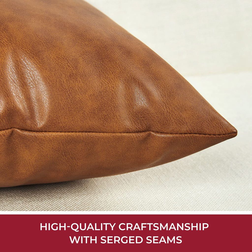- 100% Vegan Leather – Buttery-soft, animal-friendly, & low-maintenance. Our 18" x 18" Mellanni Faux Leather Pillow Cover 2 pc set offers the look & feel of real leather on a budget – without any of the fuss. Add a pop of texture & color to your living room, bedroom, & more.