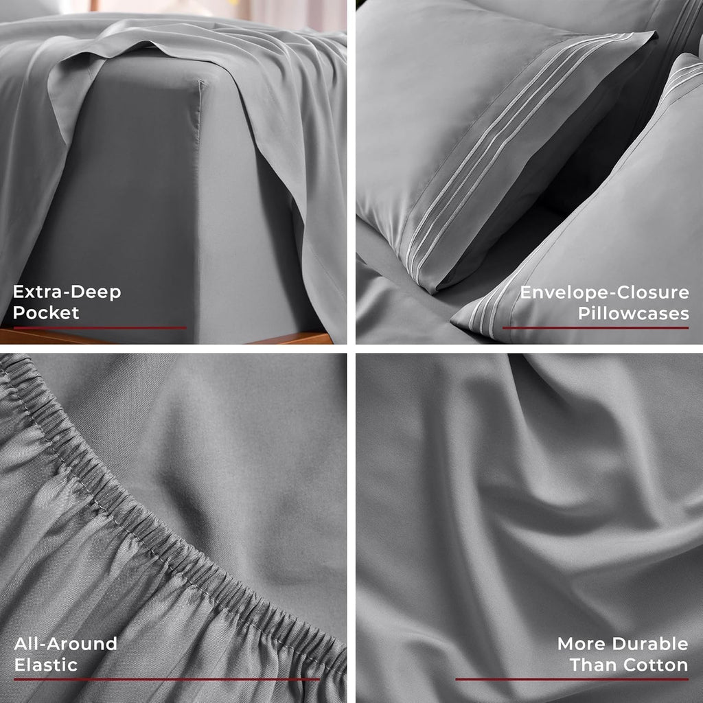 - Mellanni's flagship, queen-size sheet set with additional pillowcases offers a touch of luxury at an affordable price. The Bundle includes a generously-sized top sheet measuring 102"x90", a fitted sheet measuring 80"x60", and 4 envelope-style pillowcases measuring 20"x30". Enhance your sleep with the indulgence of premium bedding.