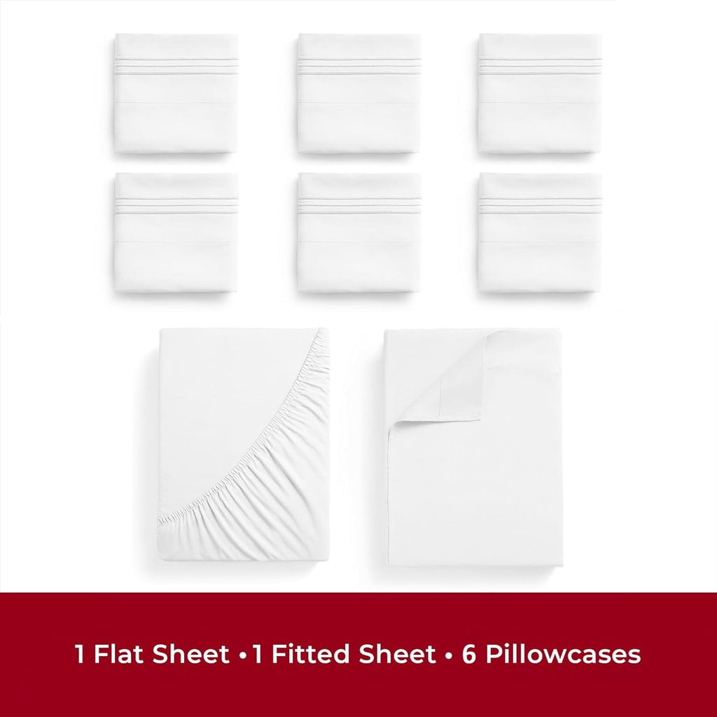- Mellanni's flagship, king-size sheet set with additional pillowcases offers a touch of luxury at an affordable price. The Bundle includes a generously-sized top sheet measuring 102"x105", a fitted sheet measuring 78"x80", and 6 envelope-style pillowcases measuring 20"x40". Enhance your sleep with the indulgence of premium bedding.