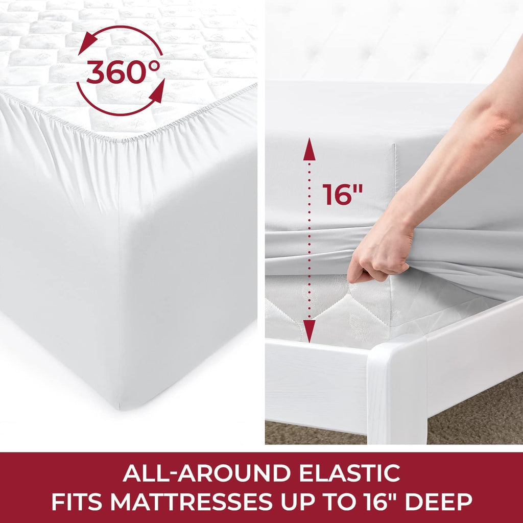- Full Size Luxury 4pc Bed Sheets Set - 1 flat sheet 81”x96”", 1 fitted sheet 54" x 75", 2 pillowcases 20"x30". Deep pocket fitted sheet with elastic all around (not just the corners, like other sheets). Fits mattresses up to 16"