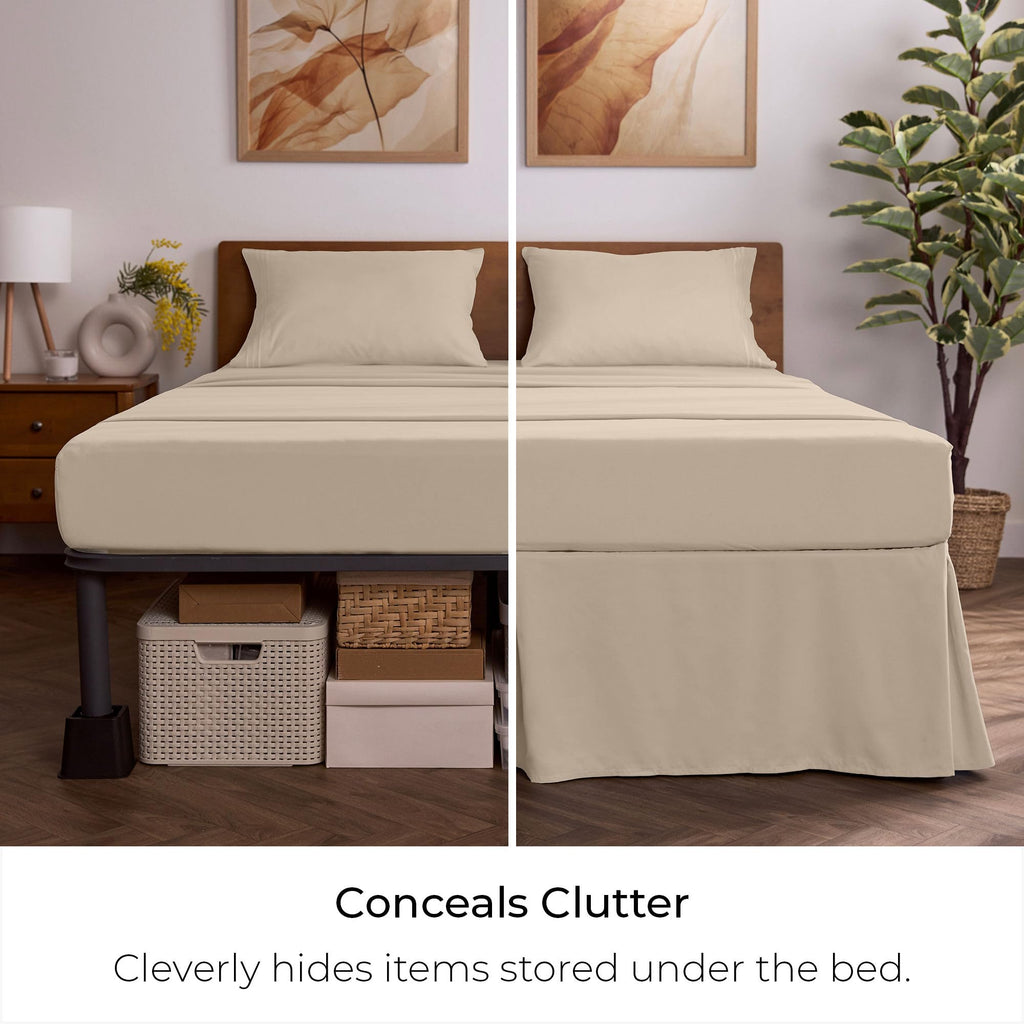 - Highest Quality Double Brushed Microfiber: Made with 100% high-quality microfiber without any unsightly extra fabric found on other bed skirts. Choose from a great selection of colors to make your bedroom feel like a luxury hotel room
