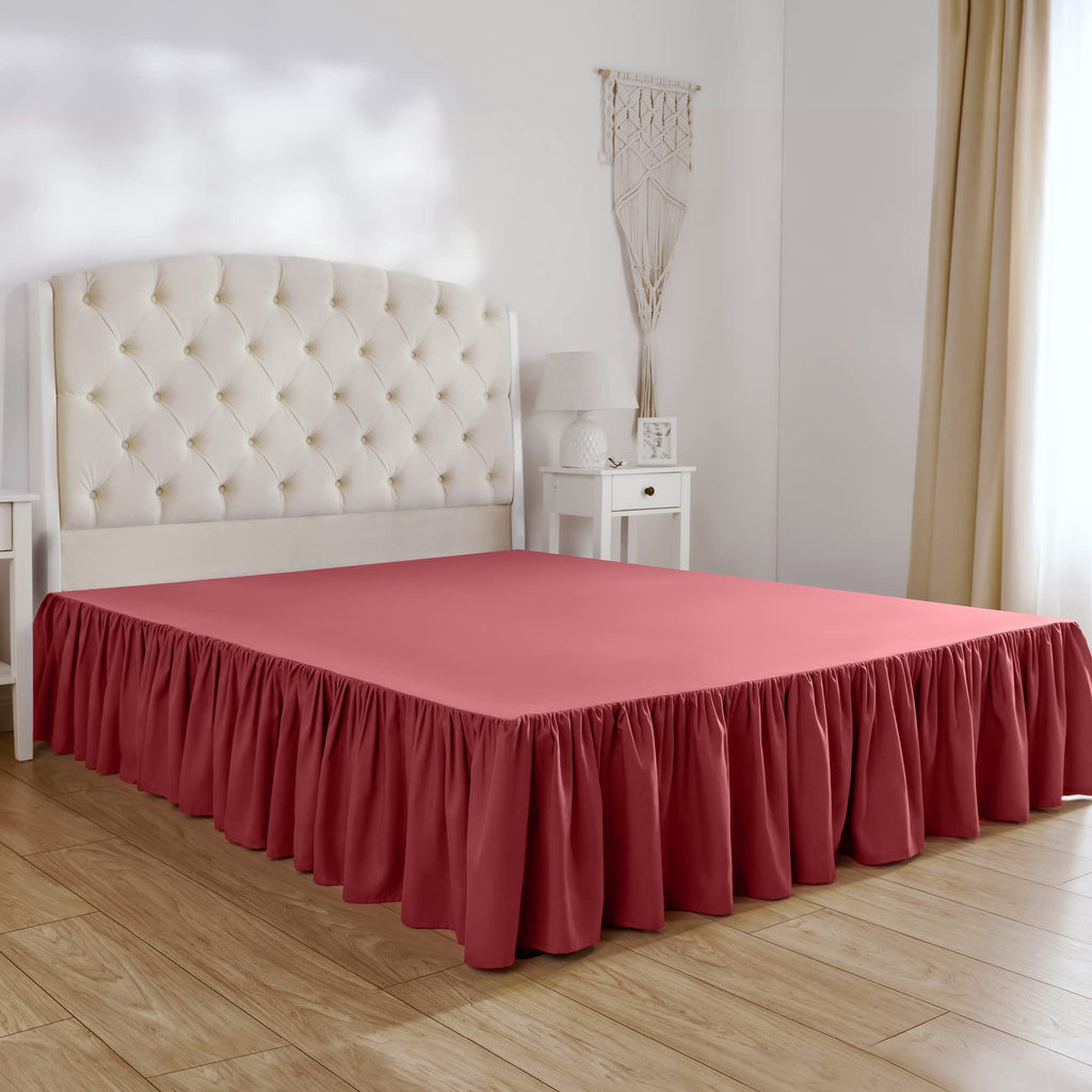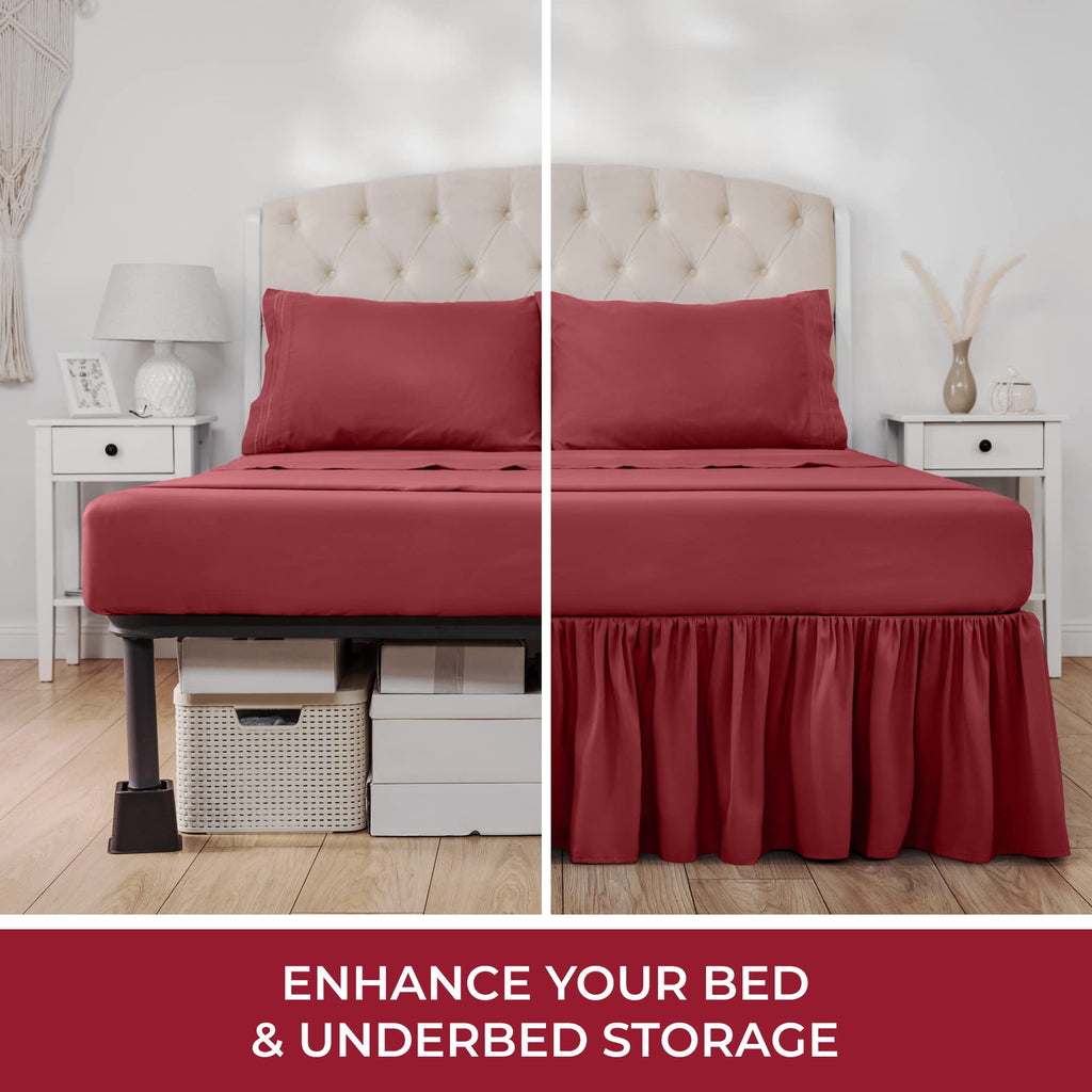 - Enhance Your Bed & Underbed Storage – Mellanni's Ruffle Bedskirt stylishly conceals box spring & bed frame while hiding items stored under the bed. Prevent dust accumulation, eliminate clutter, and give your bed a more finished look. The 15” dropped ruffle hangs flush to the floor to seamlessly fit most standard mattresses.