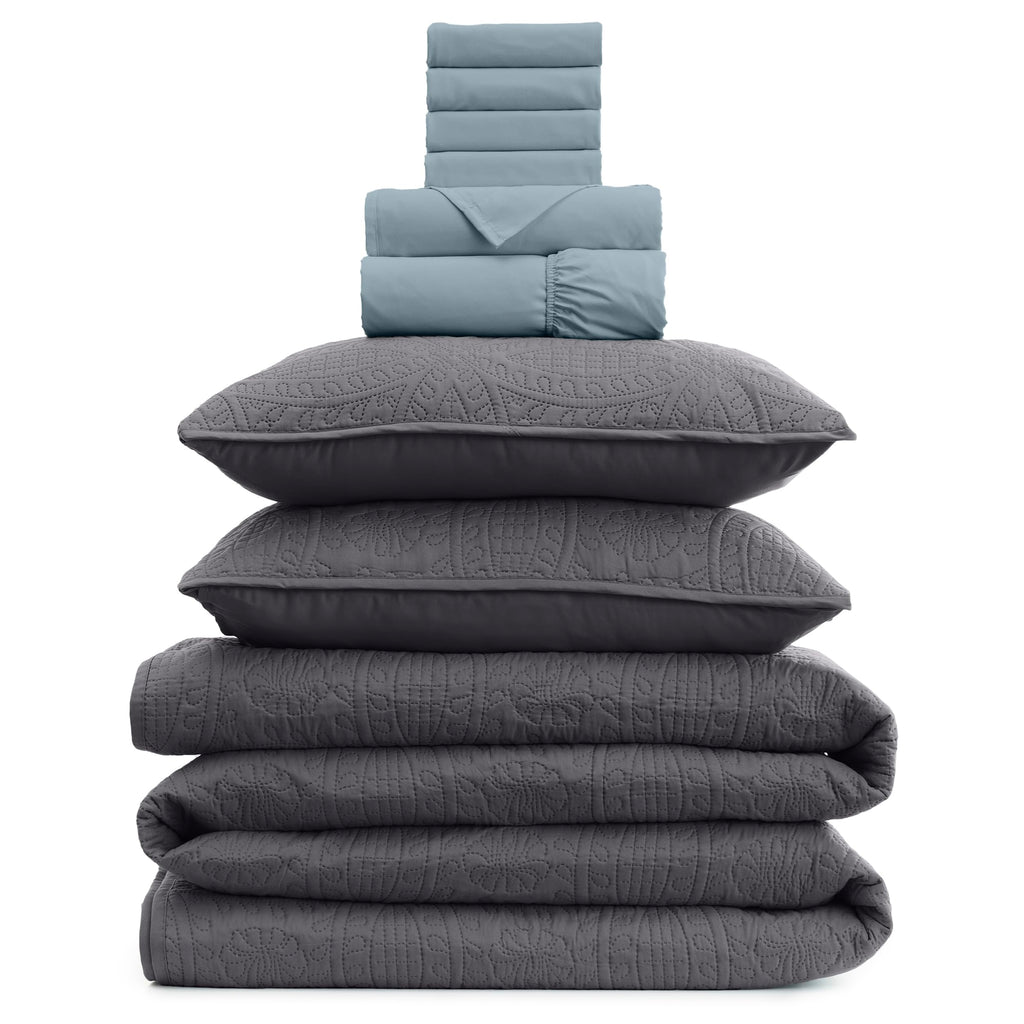 - The Bundle set includes: Mellanni's flagship 6-Piece King size sheet set - top sheet 102"x105", fitted sheet 78"x80", & 4 envelope style pillow cases 20"x40" and 3-Piece Oversized King bedspread set - 2 shams (20" x 36") & 1 bedspread (111" x 106").