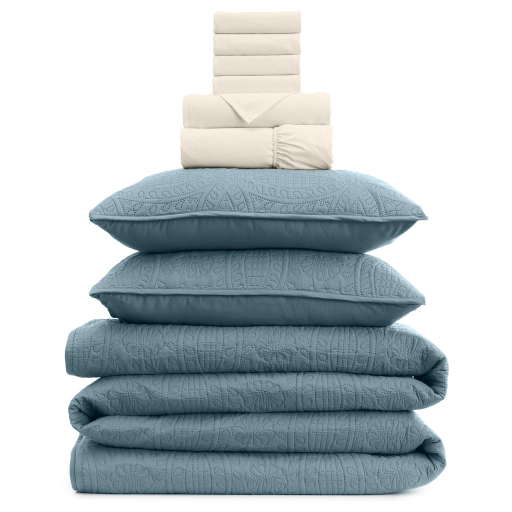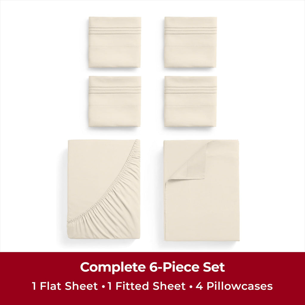 - The Bundle set includes: Mellanni's flagship 6-Piece King size sheet set - top sheet 102"x105", fitted sheet 78"x80", & 4 envelope style pillow cases 20"x40" and 3-Piece Oversized King bedspread set - 2 shams (20" x 36") & 1 bedspread (111" x 106").